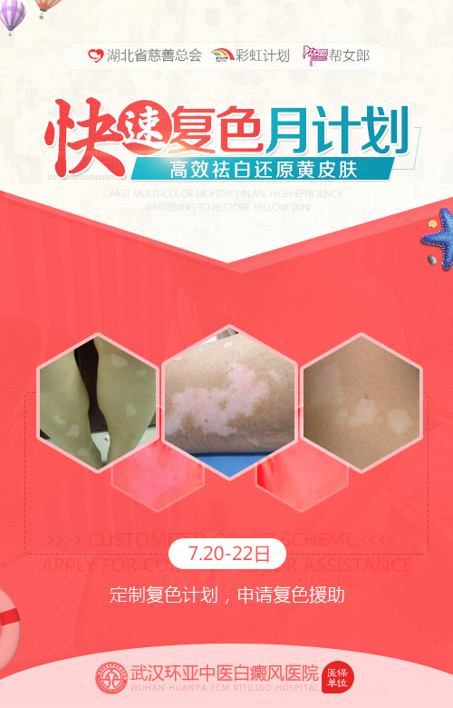 为了帮助患者快速高效祛白,武汉环亚中医白癜风医院启动“快速复色月计划”,提供专项诊疗援助,资深专家为患者量身定制快速复色方案,通过中西医结合治疗手段激活黑色素细胞的方式,还原健康黄皮肤!